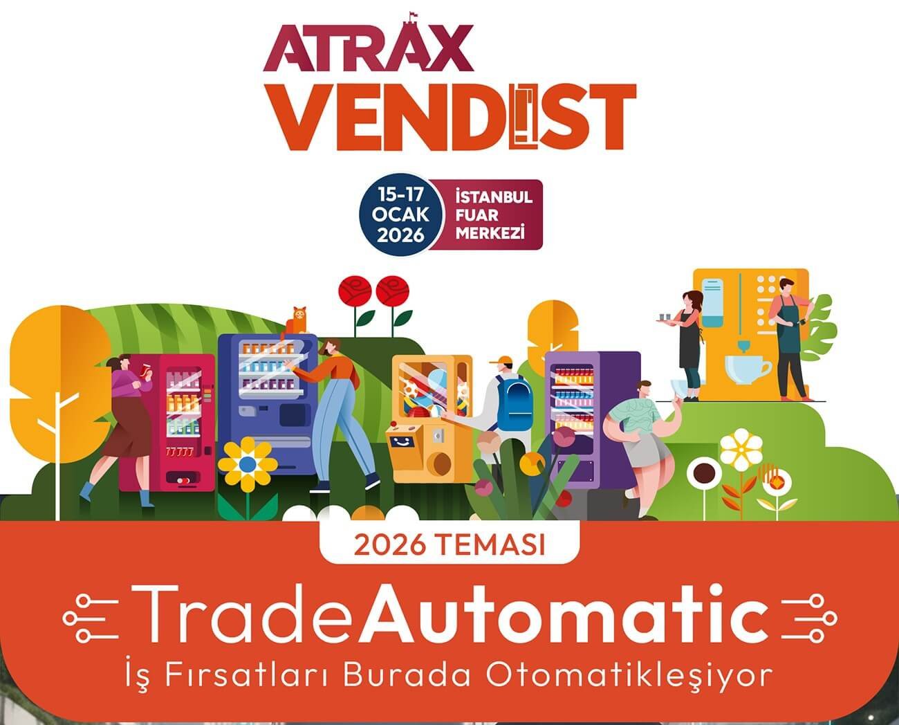 Otomat, self-servis ve akıllı alışveriş teknolojileri sektörünün bölgedeki tek ihtisas fuarı olan VENDIST,15–17 Ocak 2026 tarihlerinde İstanbul Fuar Merkezinde, ATRAX – Uluslararası Eğlence, Park, Spor ve Rekreasyon Alanları Fuarı